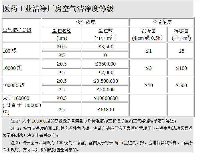 生產(chǎn)的潔凈度級(jí)別提出了非常具體的要求。