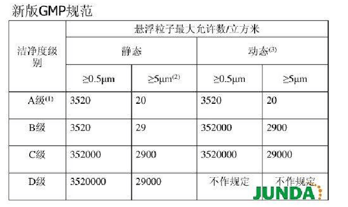 新版GMP中的潔凈度等級(jí)指標(biāo)