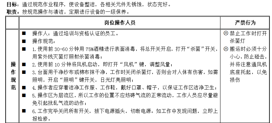 超凈工作臺操作規(guī)程